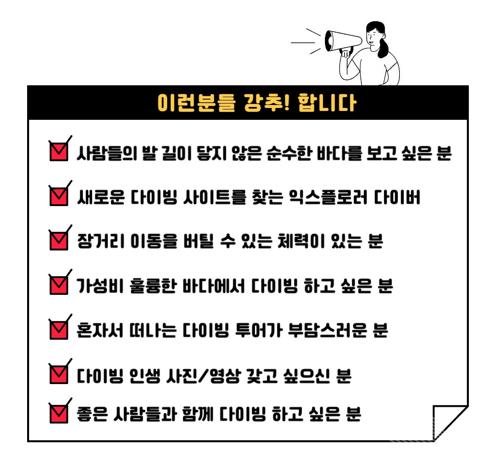 ✅ 투어 참가는 매너있는 어드밴스드 다이버 이상부터 참가 가능